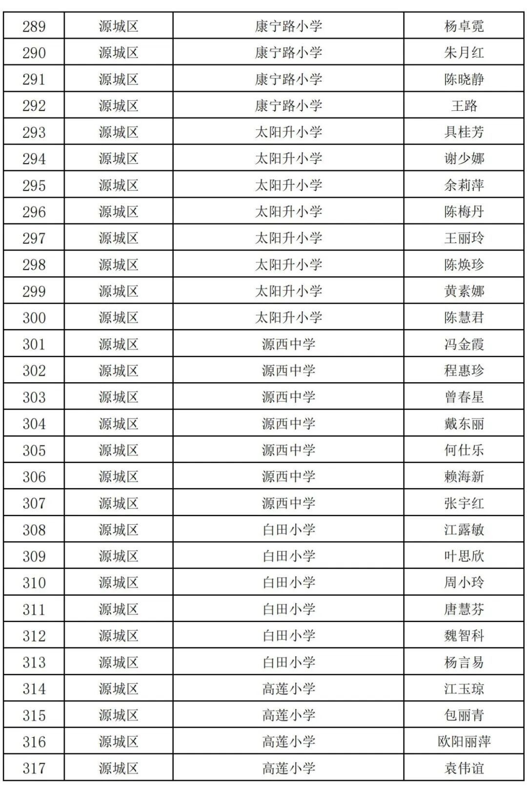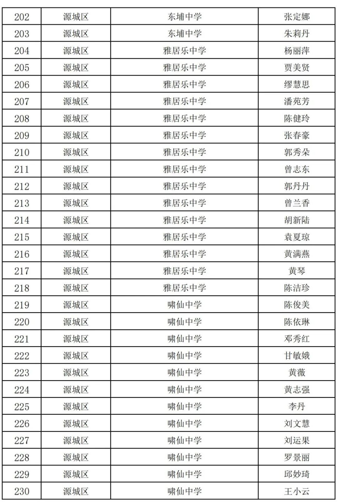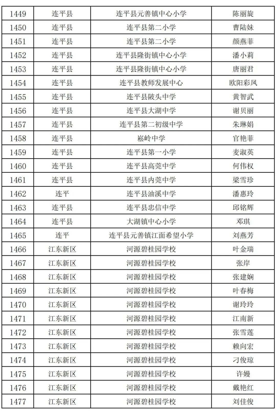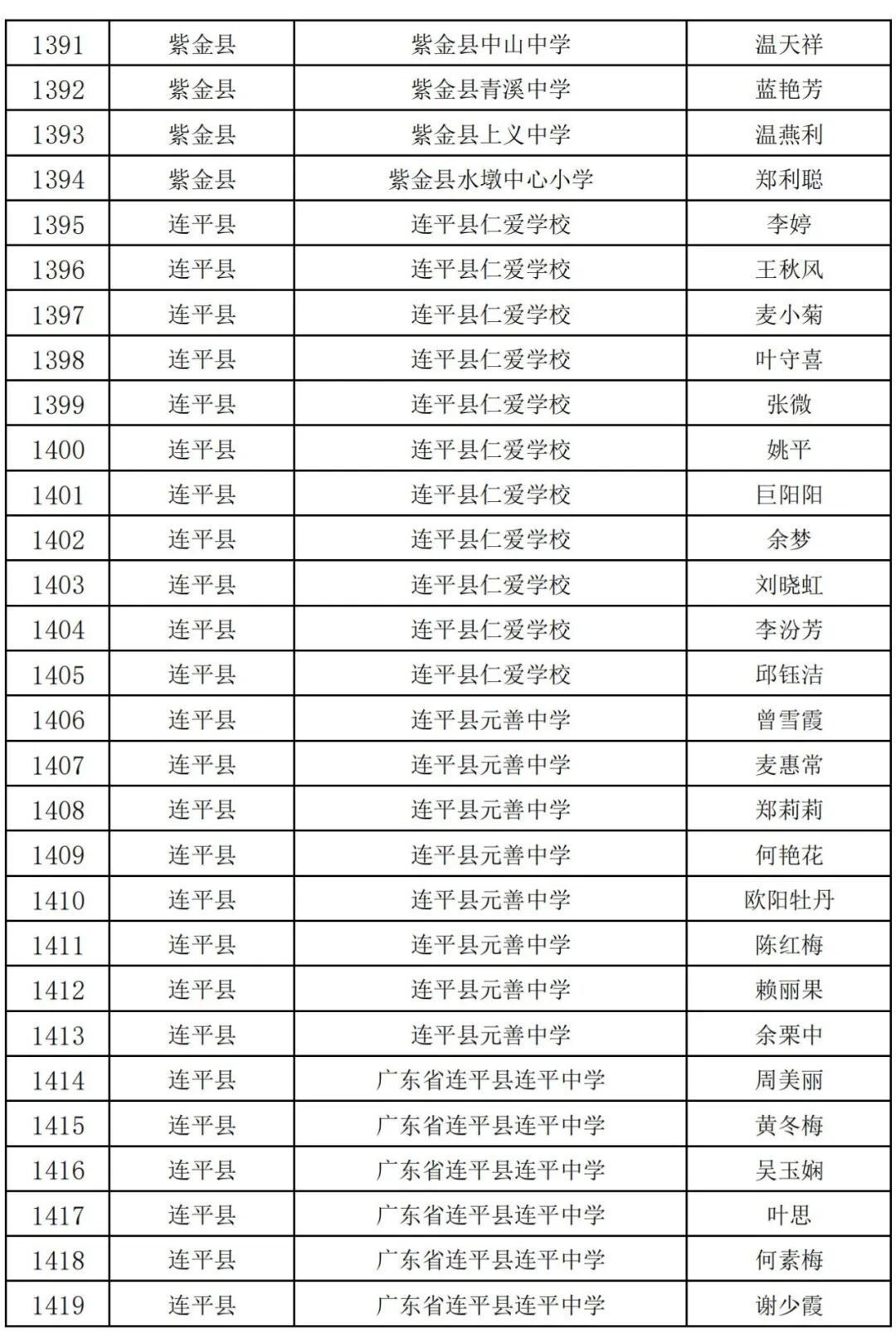 根据《河源市高素质教师队伍建设项目实施方案》《河源市教育局关于开展河源市中小学市级卓越教师、骨干教师(第二批)遴选认定的通知》(河教师〔2025〕23号),在各地各校推荐的基础上,经评审小组审核和遴选等环节,拟认定陈水燕等358人为市卓越教师,蔡健芳等1509人为市骨干教师,现予以公示(详见附件)。