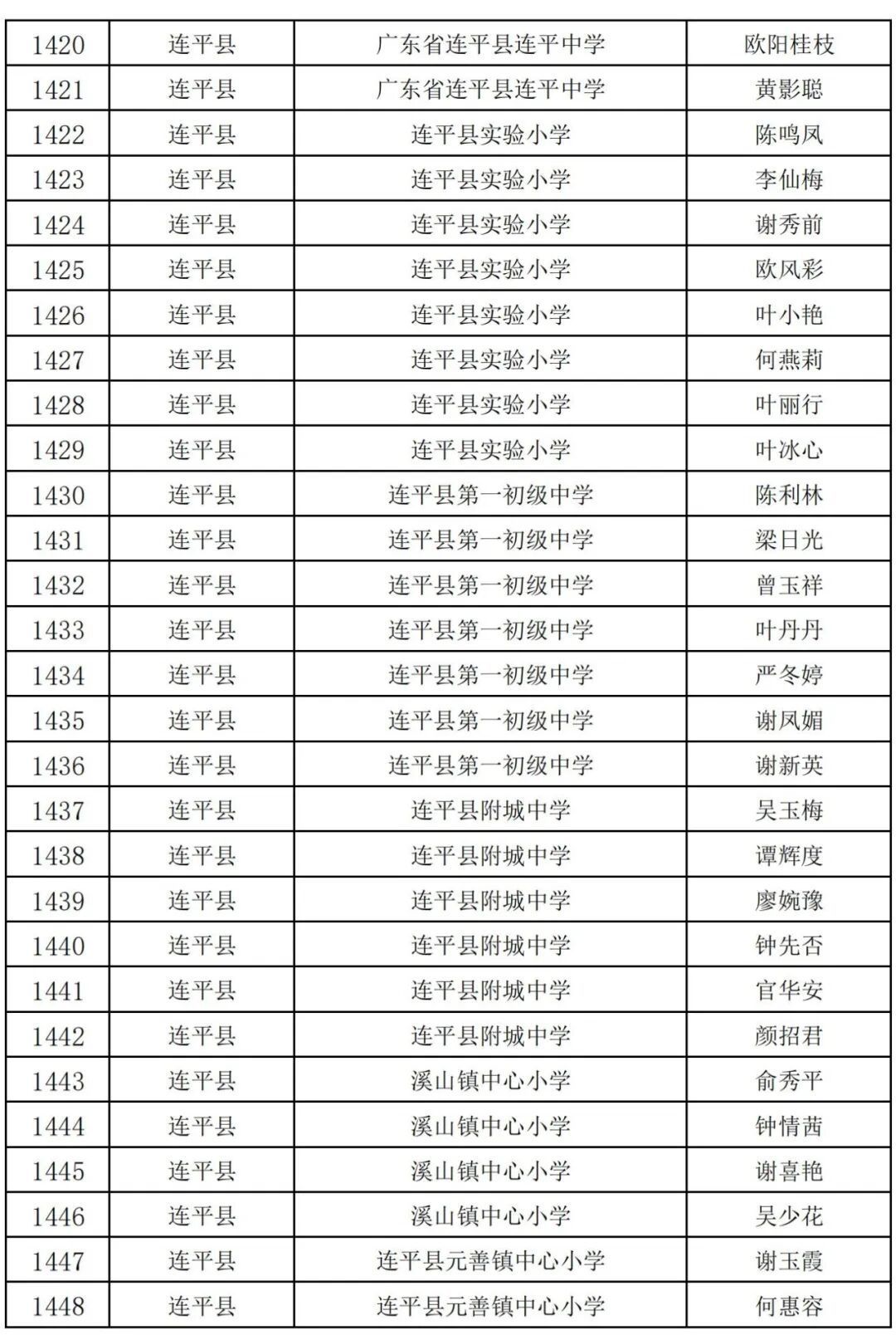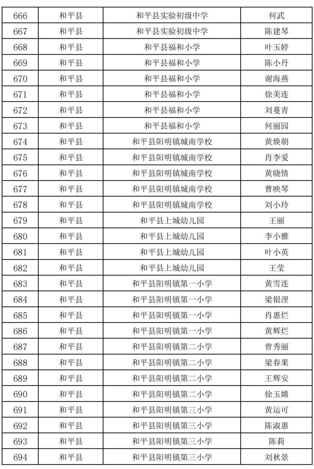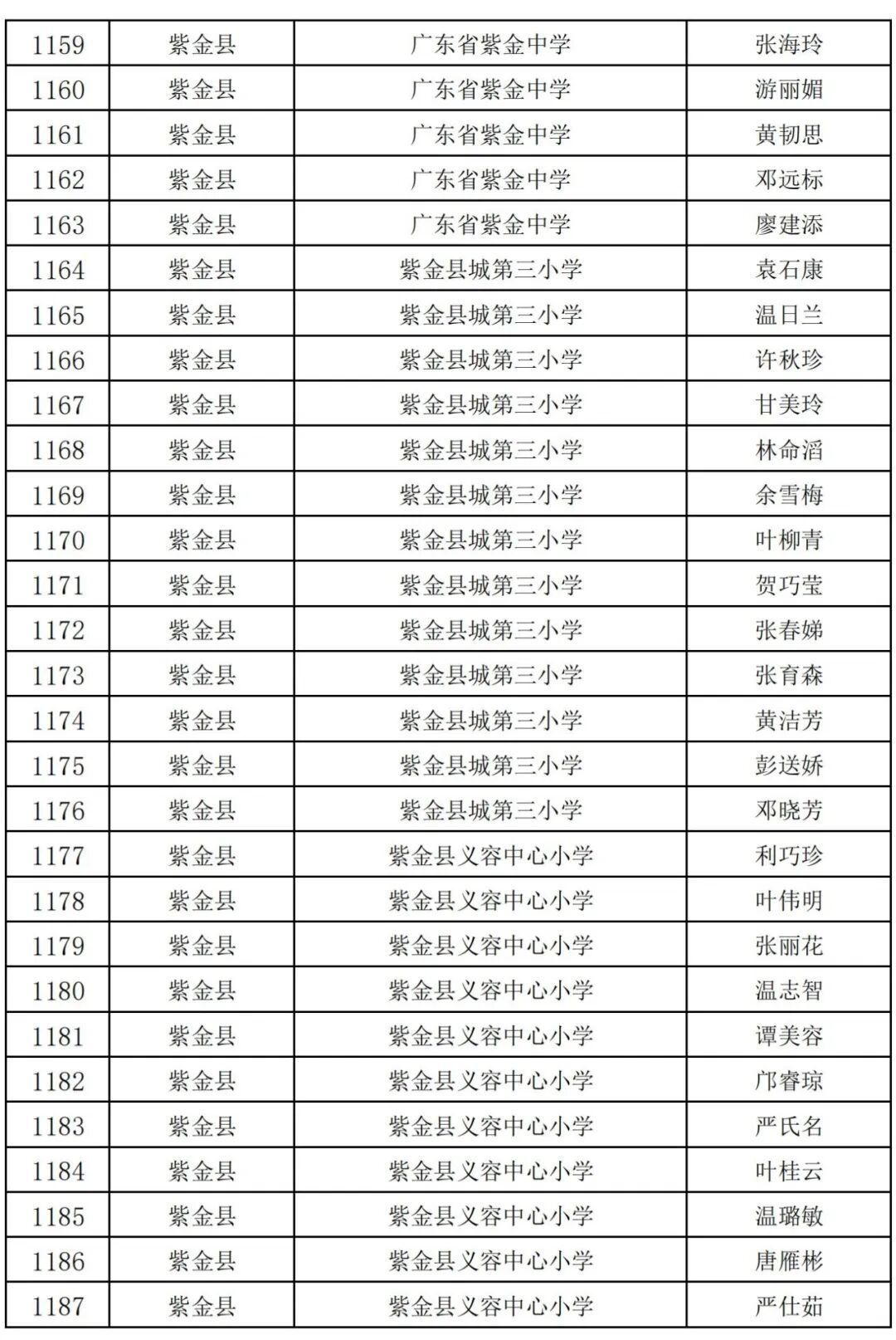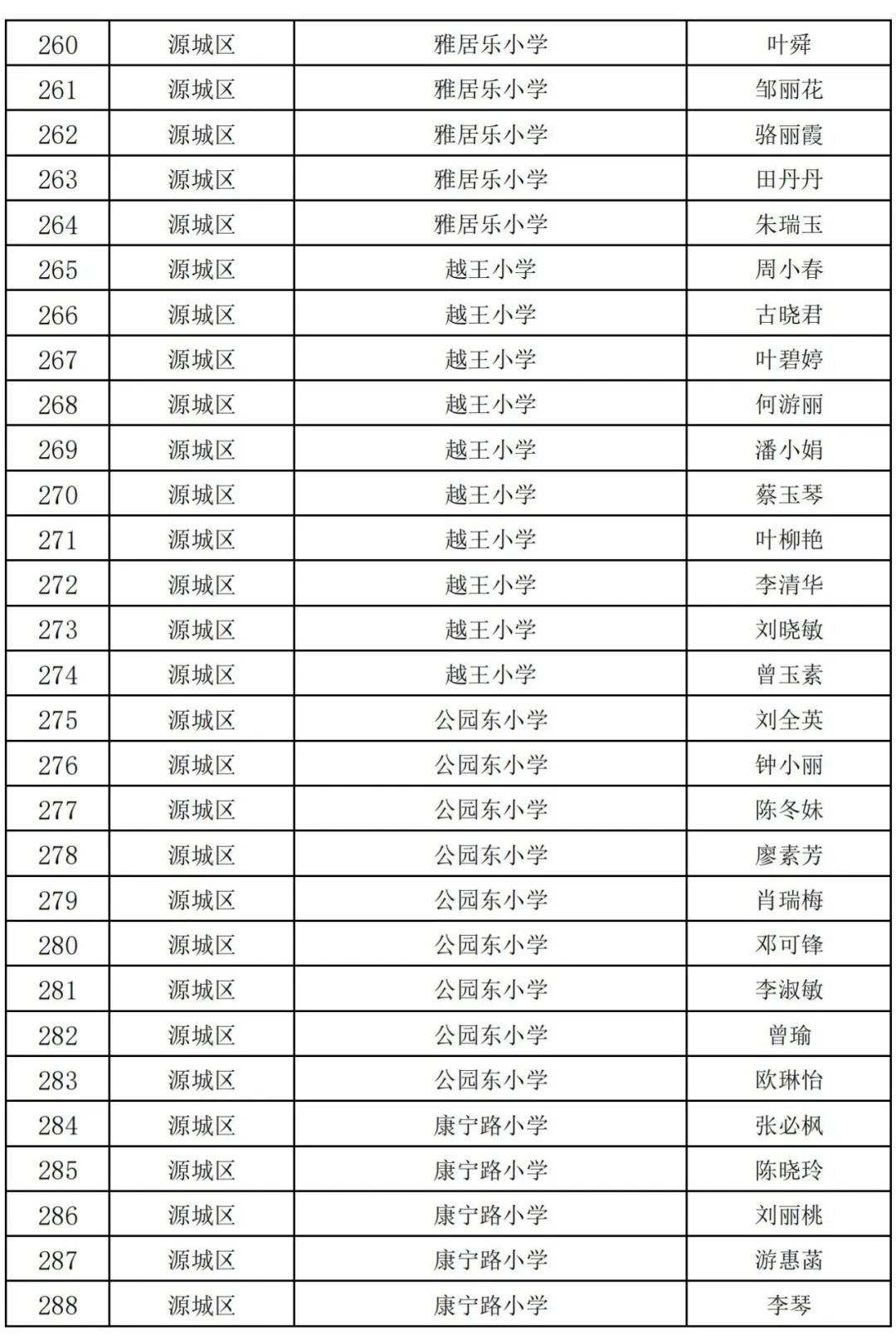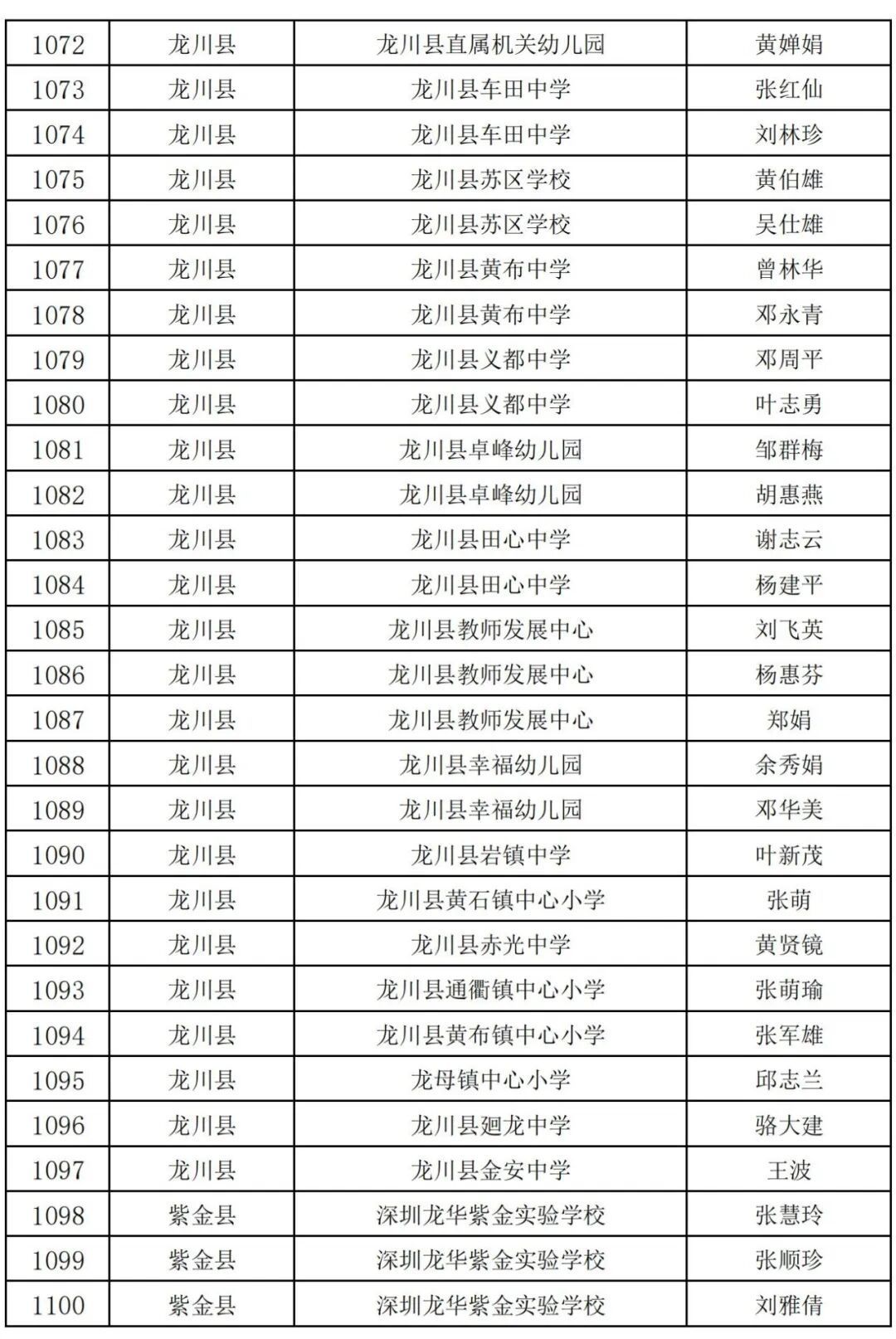 根据《河源市高素质教师队伍建设项目实施方案》《河源市教育局关于开展河源市中小学市级卓越教师、骨干教师(第二批)遴选认定的通知》(河教师〔2025〕23号),在各地各校推荐的基础上,经评审小组审核和遴选等环节,拟认定陈水燕等358人为市卓越教师,蔡健芳等1509人为市骨干教师,现予以公示(详见附件)。