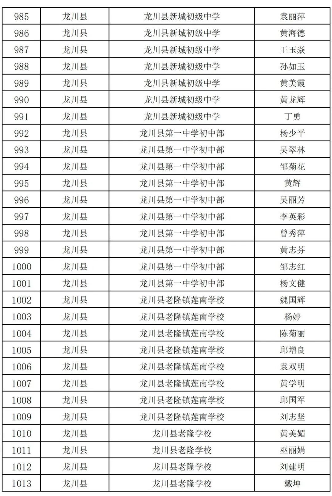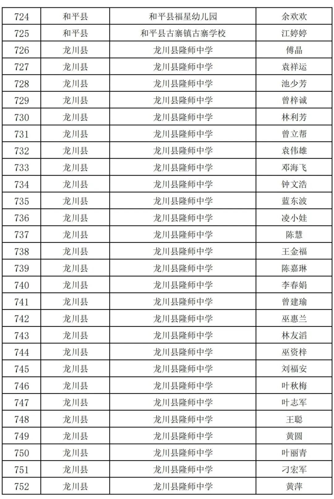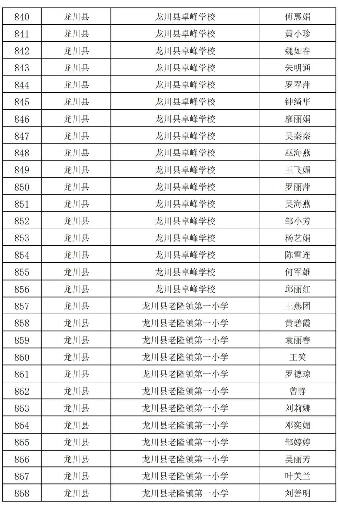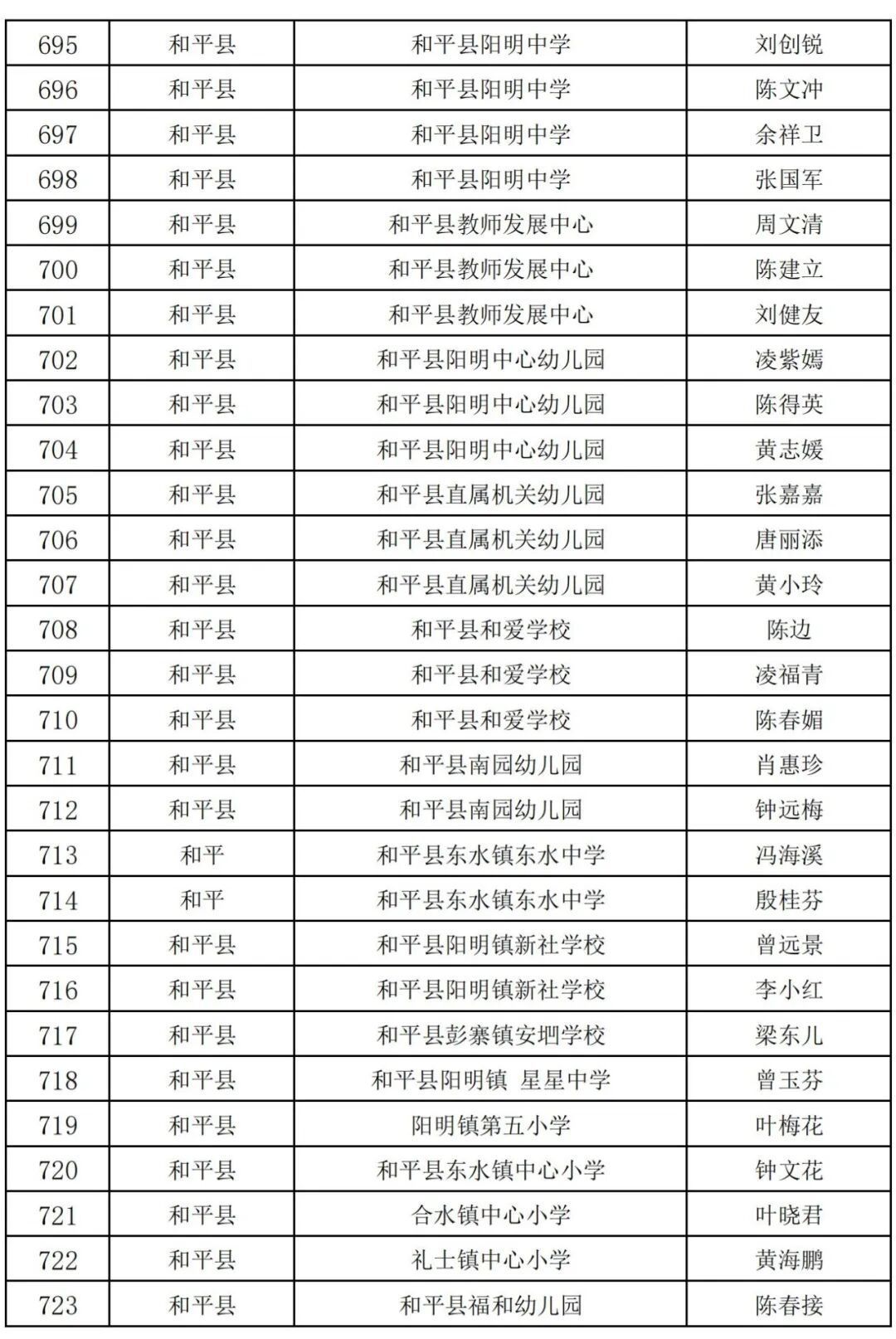 根据《河源市高素质教师队伍建设项目实施方案》《河源市教育局关于开展河源市中小学市级卓越教师、骨干教师(第二批)遴选认定的通知》(河教师〔2025〕23号),在各地各校推荐的基础上,经评审小组审核和遴选等环节,拟认定陈水燕等358人为市卓越教师,蔡健芳等1509人为市骨干教师,现予以公示(详见附件)。