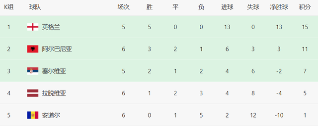 K组的英格兰5场15分,阿尔巴尼亚6场11分。这个世预赛之夜,英格兰客场挑战阿尔巴尼亚。只要战胜阿尔巴尼亚,英格兰就能提前出线。
